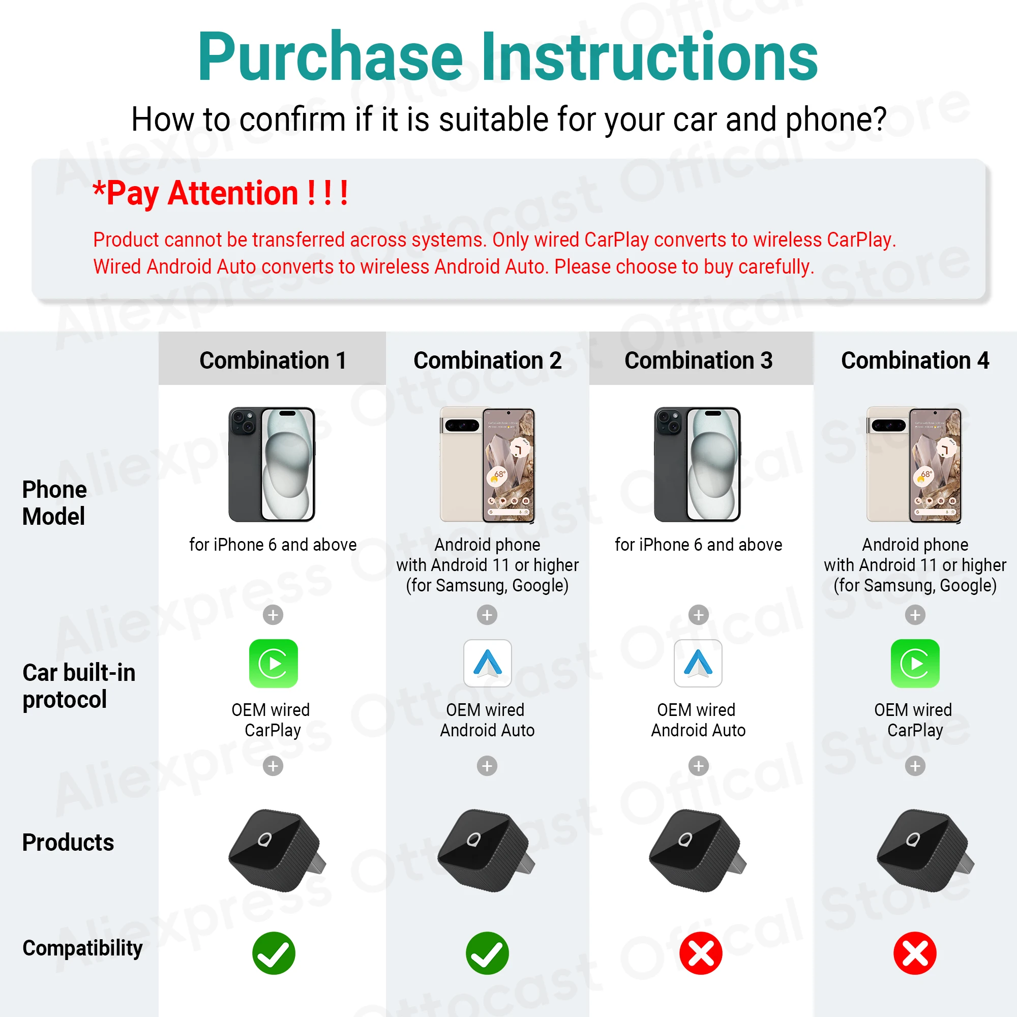 Car compatibility: Only for car built in original wired CarPlay or wired Android Auto cars