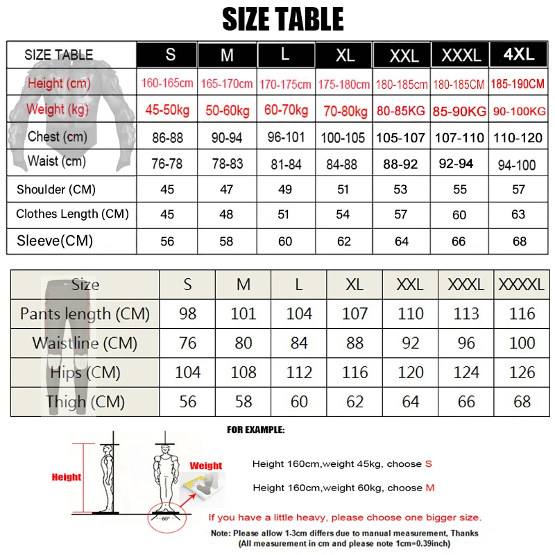 Full Body Protection Set for Motorcyclists, 100% Brand New and High Quality